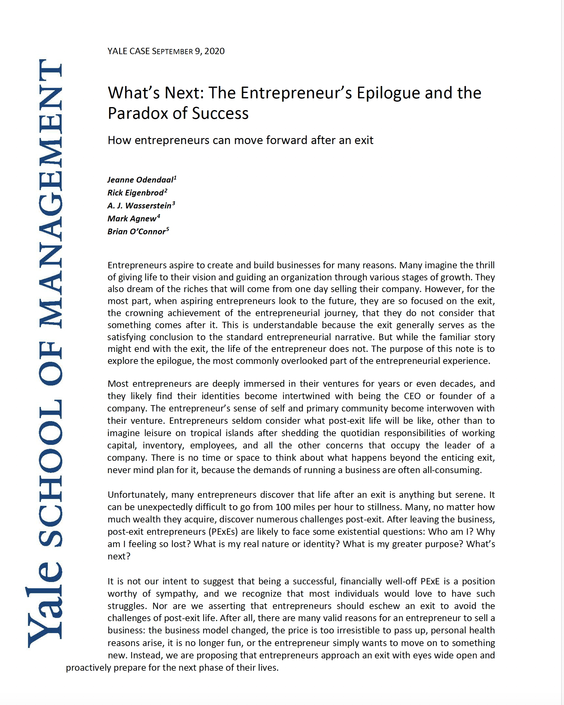 Yale School of Management — Odendaal, Eigenbrod, Wasserstein, Agnew & O'Connor